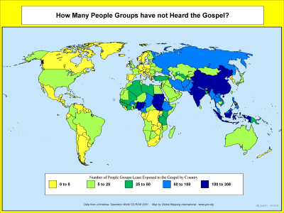 ·Type: Maps ·Description: People groups that have not heard the gospel ·Map Date: 2001 ·Producer: Global Mapping International ·Collection: Operation World (WorldVue 2002) ·Size: 8½ x 11 Inches,...